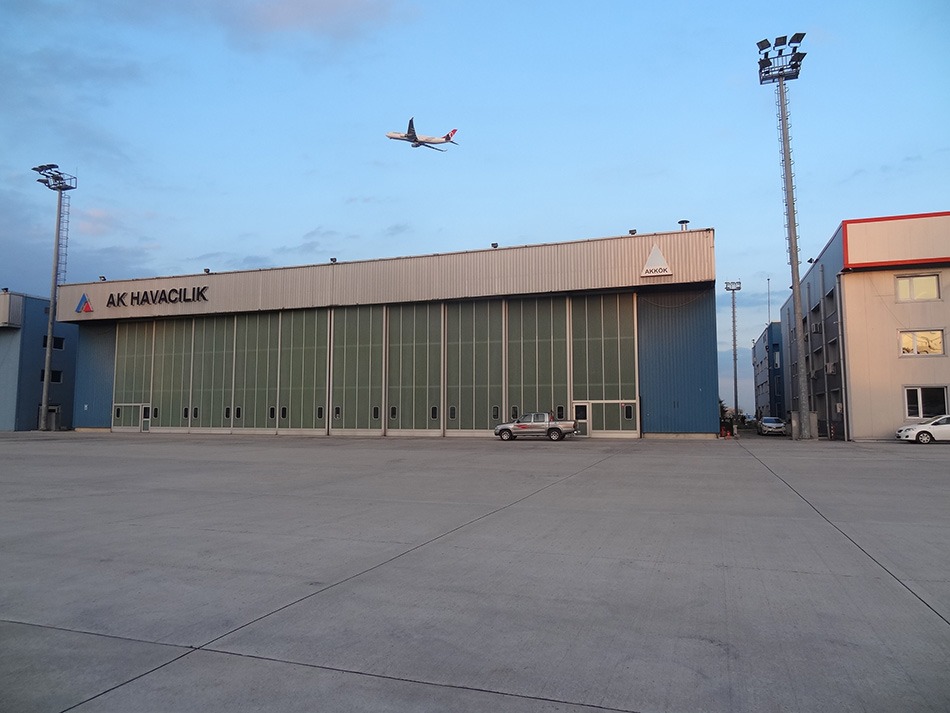 Proje Adı AK Air Havacılık Uçak Hangarı Proje Yeri Atatürk Havalimanı Malzeme Butzbach Hangar Kapısı Mimari / İnşaatAkkök Holding Kullanım Alanı9 x 42 m