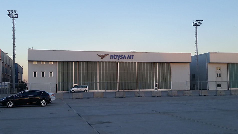 Proje Adı DÖYSA Air Havacılık Uçak Hangarı Proje Yeri Atatürk Havalimanı Malzeme Butzbach Hangar Kapısı Mimari / İnşaatSabancı Holding Kullanım Alanı9 x 36 m